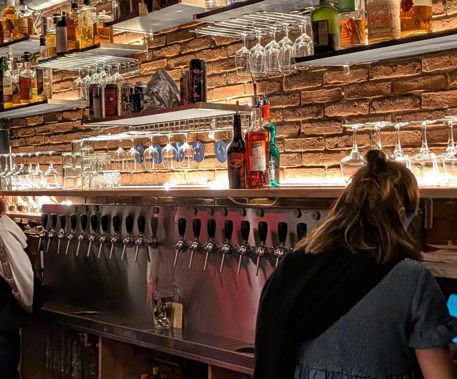 When we walked in at around 7:30 pm on a Wednesday, it was not too crowded, and we took seats at the bar. Looking around and surveying the beer menu, we felt immediately comfortable. The sign board listed 11 beers on tap (they advertise 100+ on the menu), including nine French brews, two of which were local to Paris. American styles like Session IPA and DIPA were written in English, and, just like any taproom in the US, there was a full range of styles from Pilsner to Stout with IPAs and Sours along the path.
